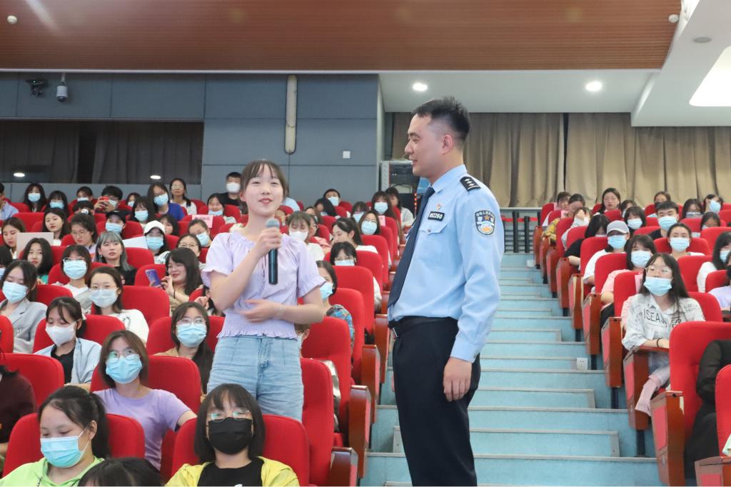最后,郭杜派出所所长陈平向同学们阐述了犯罪行为存在的普遍性,重申了国家的制度优势是民众的“定心丸”,希望同学们不恐慌、平常心对待违法犯罪,在复杂的环境中处处留心,充分意识到电信诈骗的“不可防性”,不断增强自身安全防范意识,杜绝落入诈骗陷阱。互动环节后,同学纷纷表示通过参加宣讲活动进一步提高了认识,也会向身边同学普及防骗知识,共同保护好个人生命和财产安全。