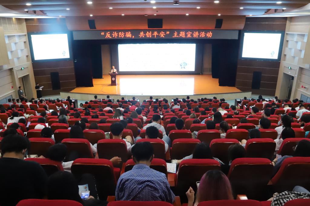 5月18日晚,郭杜派出所“反诈防骗•共创平安”校园安全宣讲教育活动在我校长安校区新勇学生活动中心二层学生剧场举行。西北大学、西安外国语大学、西安邮电大学、陕西开放大学及我校近400名学生参加了活动。我校党委学工部(学生处)、保卫部(保卫处、政保办公室)及四所高校相关干部出席。宣讲会由我校学生资助管理中心主任王楠主持。
