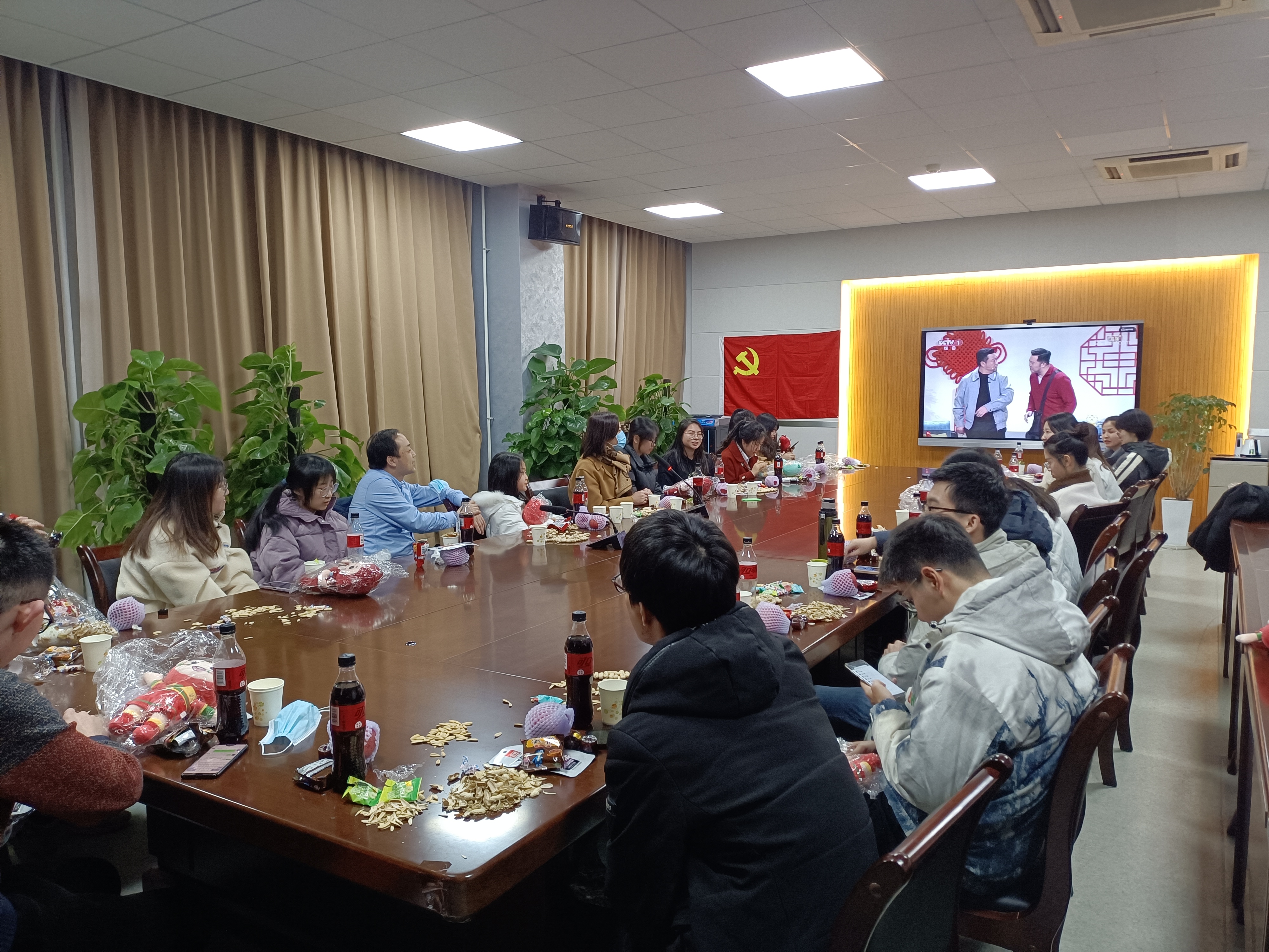 新春团圆宴是学校多年来的工作传统,在2022虎年春节这个万家团聚的日子里,学校组织留校师生欢聚一堂,共进佳肴,同贺佳节,1月31日除夕,学校领导分别到长安、雁塔两校区慰问春节留校学生,了解同学们的寒假学习生活安排,送去新春问候与祝福。除夕当晚,党委学工部(学生处)部(处)长蒋毓新与留校本科生们一同在新勇活动中心三层会议室观看了虎年春晚,现场一派其乐融融。留校学生、计算机科学学院田浩天说:“这是第一次除夕夜没能回家与家人一起吃年夜饭,但在师大这个大家庭中,同样给了我如家一般的和谐与幸福。学校的一顿团圆宴,不但饱腹,更温暖每个学子的心。”
