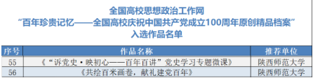 近日,全国高校思想政治工作网公布了“高校庆祝中国共产党成立100周年原创精品推广行动”遴选结果,我校推荐的《“诉党史·映初心——百年百讲”党史学习专题微课》和《共绘百米画卷,献礼建党百年》2项作品入选《百年珍贵记忆——全国高校庆祝中国共产党成立100周年原创精品档案》,并在全国高校思想政治工作网进行全国巡展。