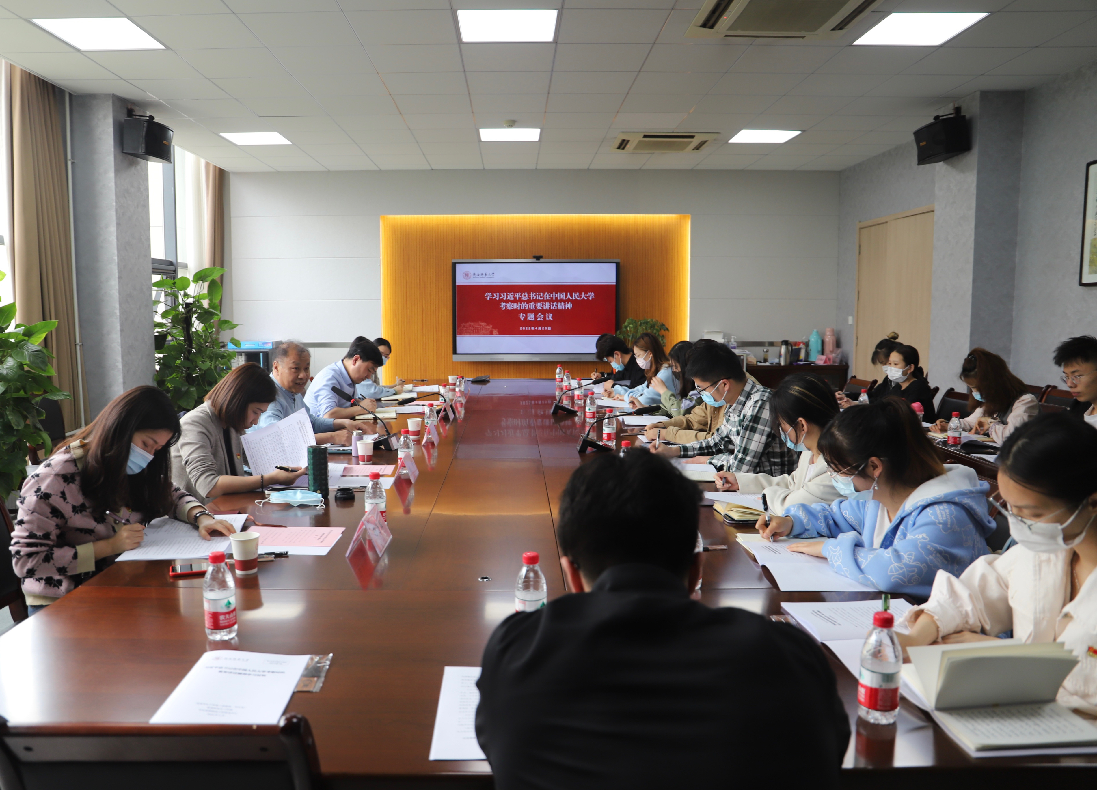 4月29日下午,我部(处)联合马克思主义学院学生党支部召开“习近平总书记在中国人民大学考察时的重要讲话精神”专题学习会。马克思主义学院教授王永和、党委副书记张倩,我部(处)相关科室负责人、辅导员代表、“红烛班”“红石榴班”学生代表参加会议。会议由党委学工部(武装部、学生处)副部(处)长祁斌业主持。