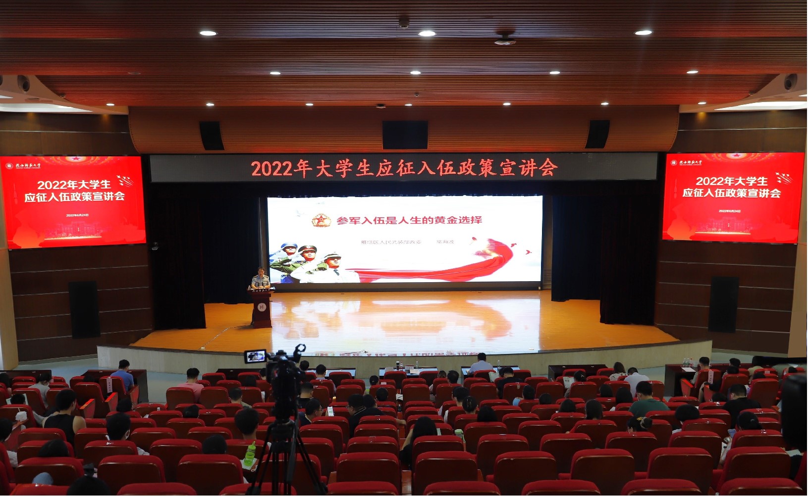 为扎实推进我校2022年秋季学期征兵工作,进一步激发广大学生参军报国热情,6月24日下午,党委学工部(武装部、学生处)、学生就业服务指导中心在新勇学生活动中心联合举办大学生应征入伍政策宣讲会。