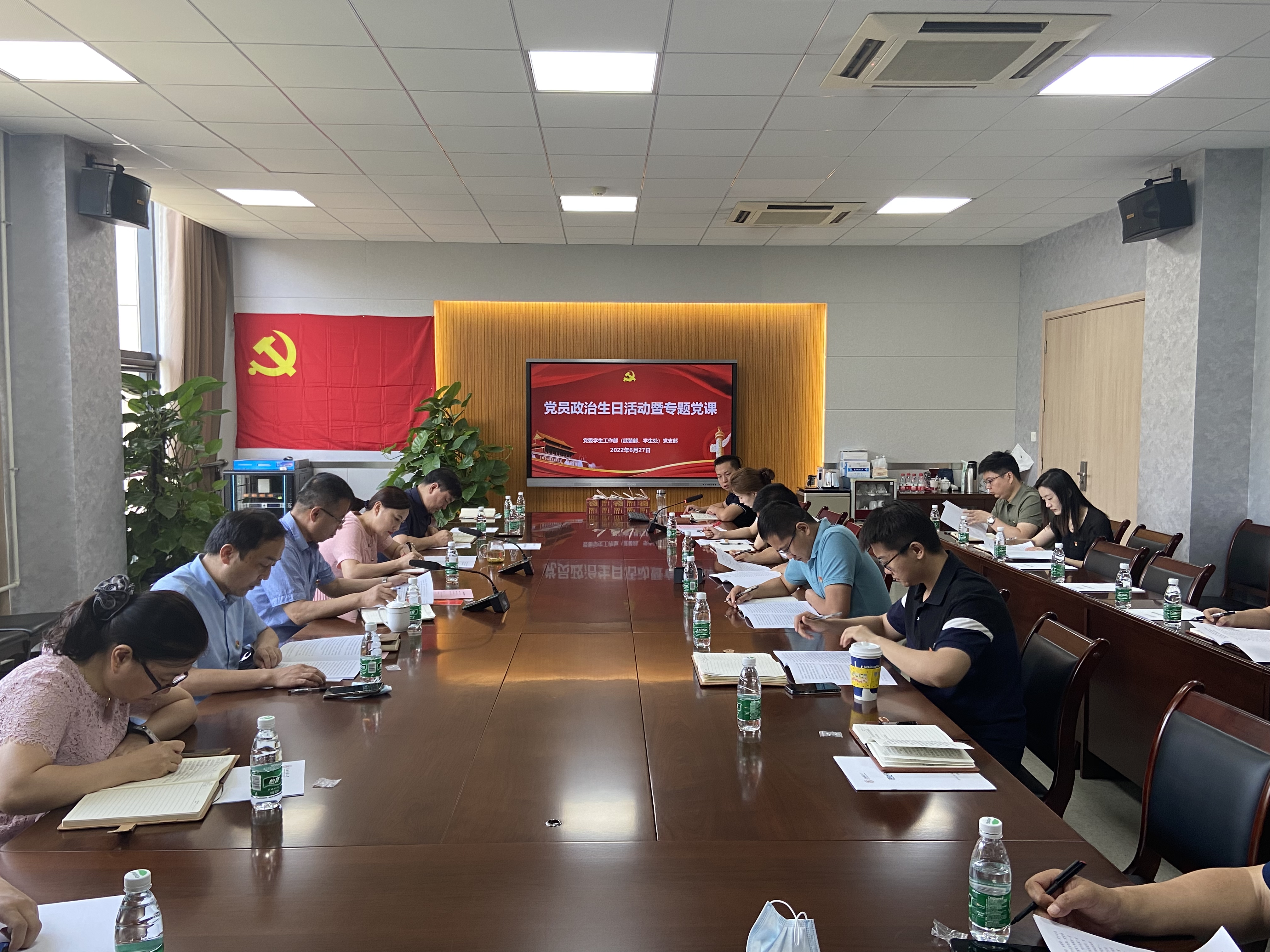 6月27日上午,党委学生工作部(武装部、学生处)党支部在新勇学生活动中心东306室开展了党员政治生日活动暨专题党课。支部全体党员参加会议,新疆内派教师邹璐洁列席会议。会议由支部副书记雷培强主持。