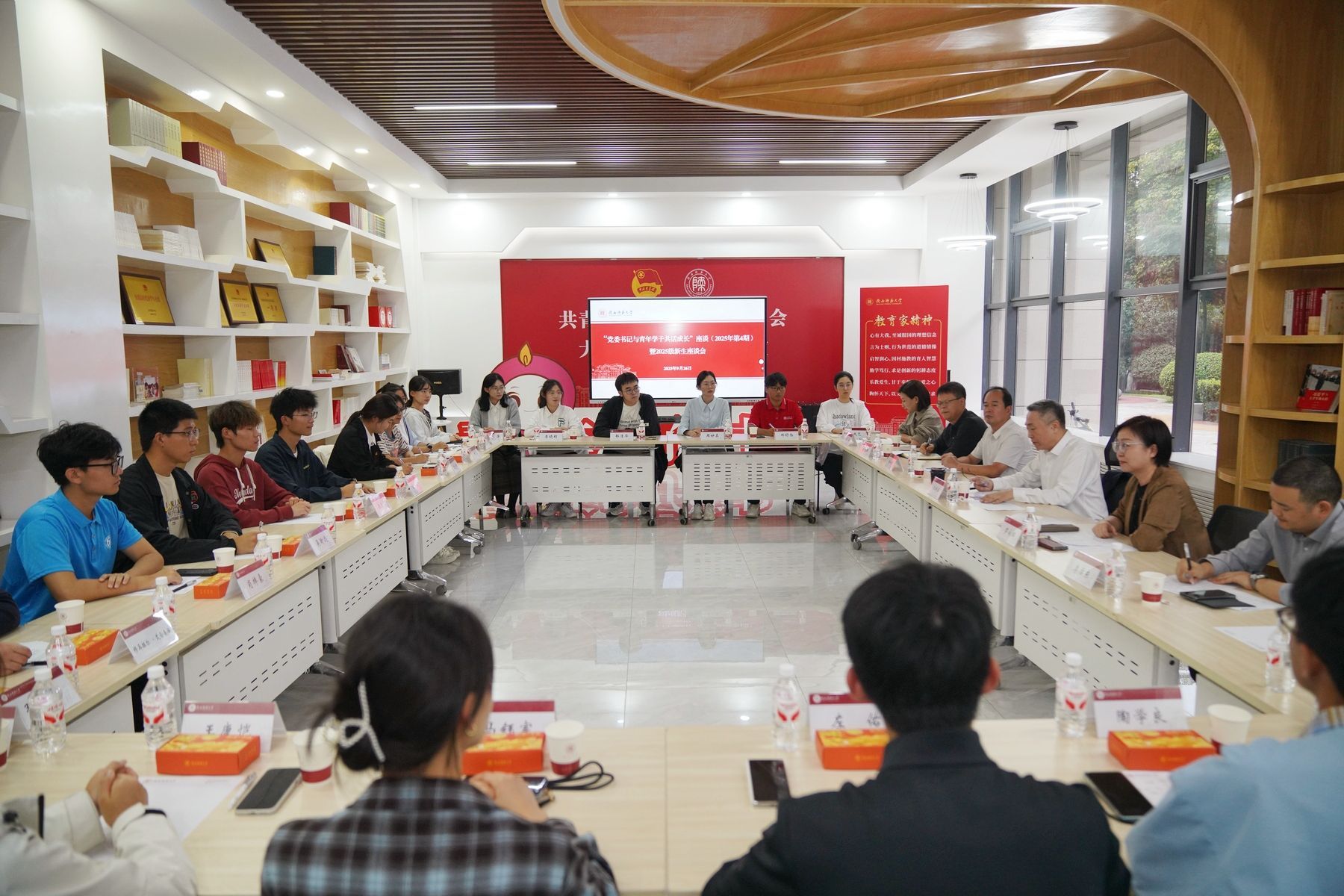 9月26日下午,“党委书记与青年学子共话成长”2025年第4期座谈会暨2025级新生座谈会在长安校区新勇学生活动中心举行,校党委书记李晓兵与22名来自不同学院(部)的2025级新生代表座谈交流,共话家国使命、交流成长感悟。校党委副书记罗永辉主持座谈会。校长助理、党委校长办公室主任袁一芳参加座谈会。