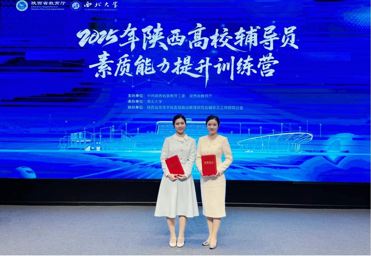11月5日至7日,由省委教育工委、省教育厅主办的2025年陕西高校辅导员素质能力提升训练营在西北大学长安校区举办。经过激烈角逐,我校历史文化学院辅导员张迪、新闻与传播学院辅导员贾丹阳从全省高校135名参训学员中脱颖而出,均以小组总分、谈心谈话双第一的优异成绩荣获“业务标兵”称号(全省高校共9人)。