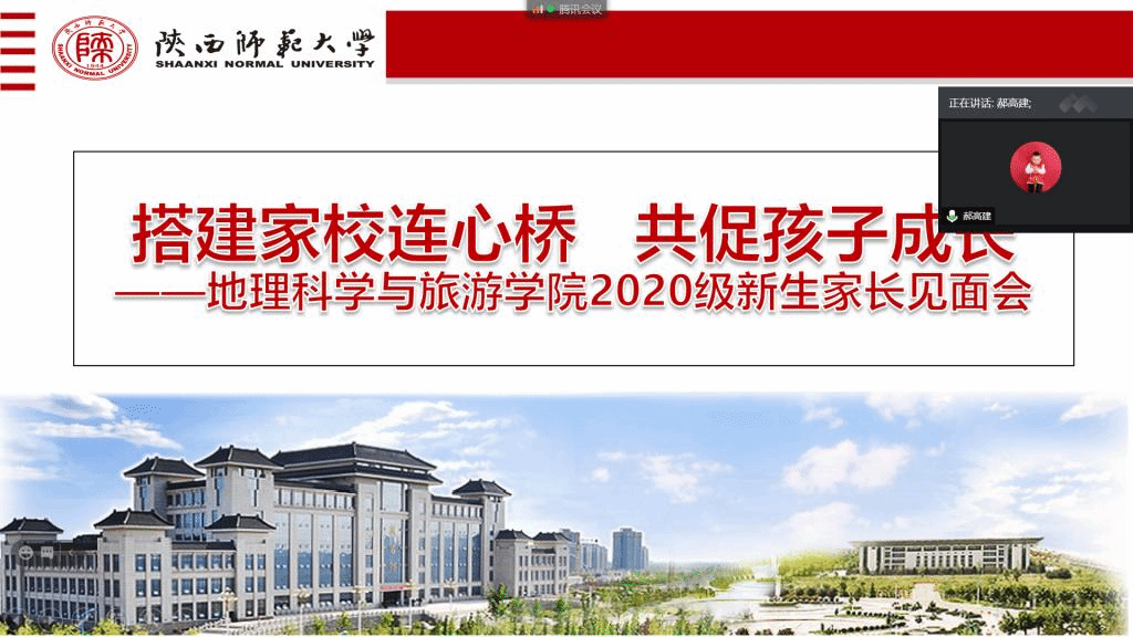 为搭建家校沟通平台,促进交流沟通,9月6日早上9点,地理科学与旅游学院在线上依托腾讯会议平台召开了2020级新生家长见面会。地理科学与旅游学院党委副书记郝高建、新生辅导员张钰超以及2020级新生家长参加了此次会议,会议由张钰超主持。