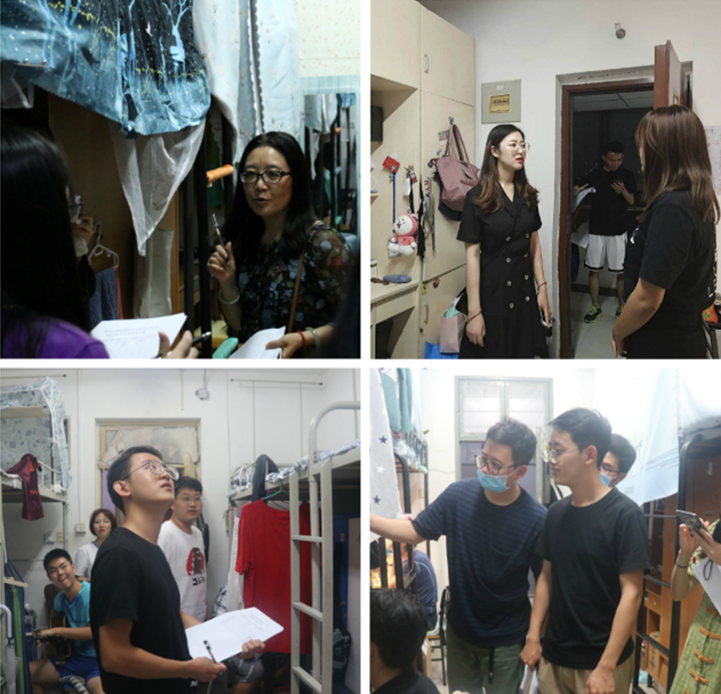 此次宿舍检查工作覆盖全院本科生、研究生寝室,是哲学与政府管理学院新学期“小屋防疫、哲政先行”宿舍文化节的系列活动之一。学院团委书记王颢、专职辅导员苏静、张凡、李悦、石雷霆,兼职辅导员王致轩、张诗悦、张智昆、孙若梦与学生会、研究生会骨干10余人,深入长安校区学生公寓D区(周园)、E区(梅园)C区(汉园)、H区(菊园)和硕士一号楼,全面开展新学期宿舍安全卫生检查和评比工作。