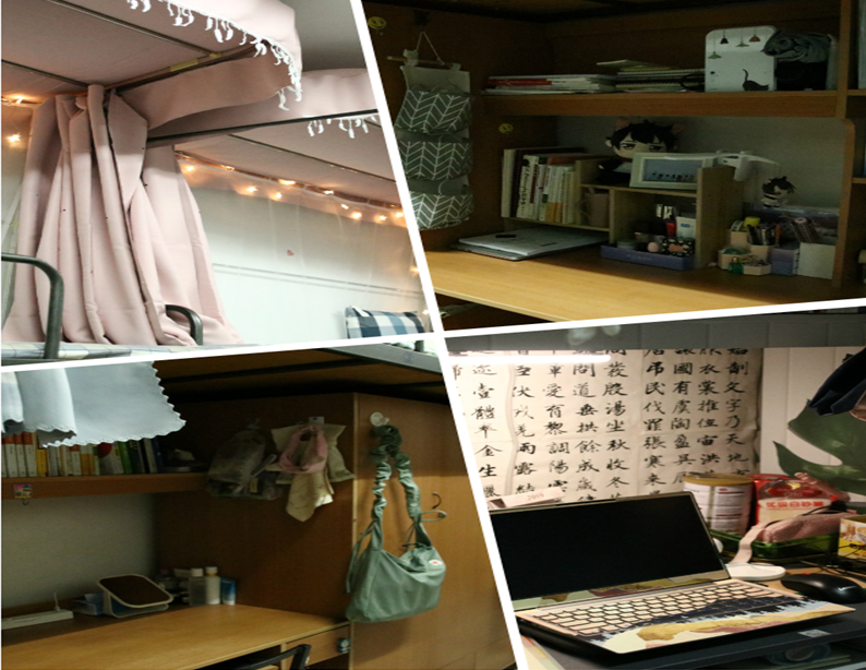 同学们的宿舍风格各异,各具特色,带给大家很多惊喜。有的宿舍里,同学们粘贴了漂亮的壁画与墙纸,铺了地毯,将整个寝室布置得非常温馨。有的宿舍布置德井井有条,文房四宝与各类书籍摆放得整整齐齐,展示了同学们对于阅读和书画的热爱。还有的宿舍在屋内放置了彩色灯带,整体氛围温馨友爱,舍友之间团结和睦,受到了老师们的一致点赞。