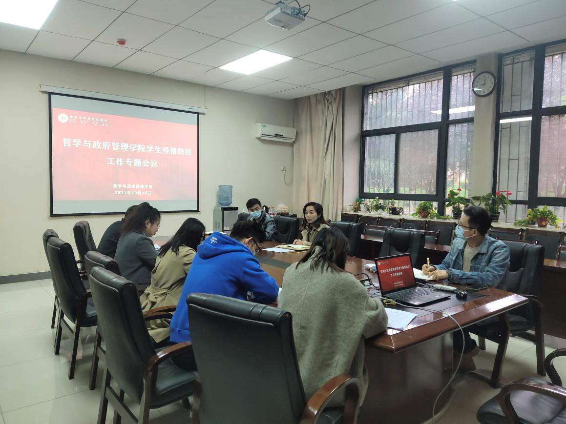 为进一步做好近期疫情防控工作,确保学生生命健康安全,10月26日上午,哲学与政府管理学院召开疫情防控专题工作会,再次专题强调、部署学生层面疫情防控工作。学院组织员、团委书记、辅导员王颢,本科生专职辅导员张凡、石雷霆、吴承恒,研究生专兼职辅导员苏静、刘美君、韩同林、研究生助管杨帆参加了会议。会议由学院党委副书记李晔主持。