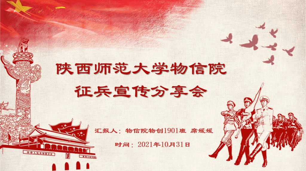 为激发我院2019级学子参军热情,营造参军报国的氛围,10月31日晚,物理学与信息技术学院于腾讯会议线上举行征兵政策宣讲会暨军旅生活分享会。会议邀请原中国人民解放军96946部队42分队战士、2019级物(新)1班席媛媛;原武警湖南总队常德支队战士、2019级电子学与信息技术专业1班林嘉尧;原武警内蒙古总队乌海支队战士、2019级物理学3班王林巍分享军旅生活。会议由2019级本科生辅导员高菀婧主持。