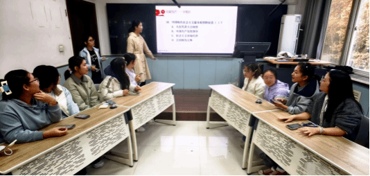 在讨论分享环节,各小组紧扣中国式现代化的核心内涵、鲜明特征及现实实践,将理论认知与身边案例、日常生活深度结合展开研讨。小组代表廖妤嫣分享“社区损坏设施快速修缮”“城市地铁高效建成通车”等鲜活实例,以小切口展现大发展。通过具象化案例分享与思想碰撞,学生深化了对中国式现代化的理解认同,真切感受到其在民生改善、基础设施建设等领域的显著成效。