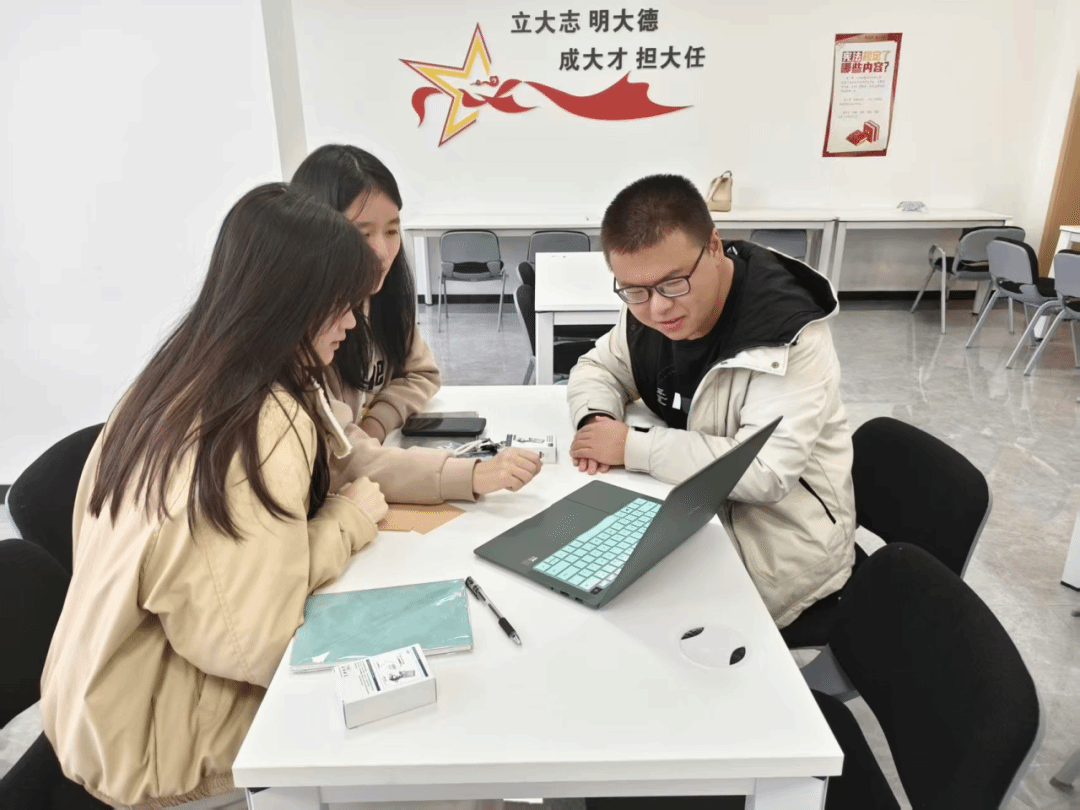 在编程思维“碰撞会”上,同学们以小组为单位,围绕编程题目展开深入探讨。在“质疑—讨论—共识”的过程中,同学们不仅攻克了编程难题,更学会了用“教学者”的视角拆解知识,实现了从“解题者”到“授业者”的思维跨越。活动特别设置“科技献礼祖国”主题编程环节,引导同学们以代码呈现国家科技发展成就,将“科技报国”信念融入专业学习。