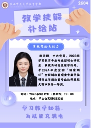 为深入贯彻新时代人才培养要求,助力师范生夯实教学技能根基,精准对接“红烛杯”师范生教育教学能力大赛备赛需求,教育学部博雅学风涵养工作室开展“教学技能补给站”系列活动。活动邀请往届赛事中斩获佳绩的优秀学子担任分享嘉宾,搭建朋辈交流、经验互鉴的优质平台,以赛促学,赋能成长。