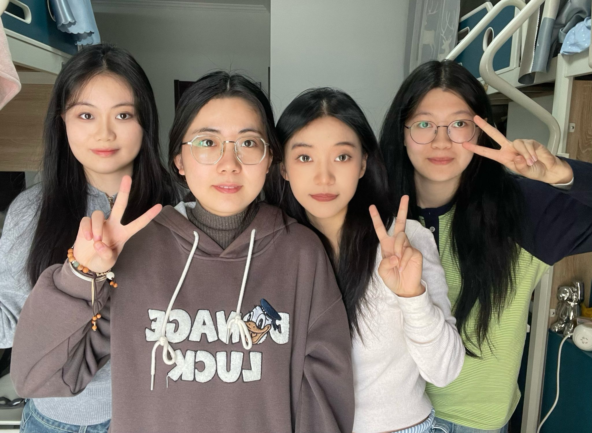 宿舍成员牢记"用专业知识服务社会"的使命,积极参加各项志愿服务活动。王婧同学作为成都大运会的服务志愿者,累计接待外籍运动员43人次,在世界赛场上展现师大学子的奉献与担当;韩新媛、王艺睿和曹亦晴积极参与学校的寒暑期实践项目,三人在访谈优秀毕业生的实践中向学长学姐学习,规划自己的未来,真正践行了新时代传媒学子的责任与担当。四人四年志愿服务时长总计600余小时。