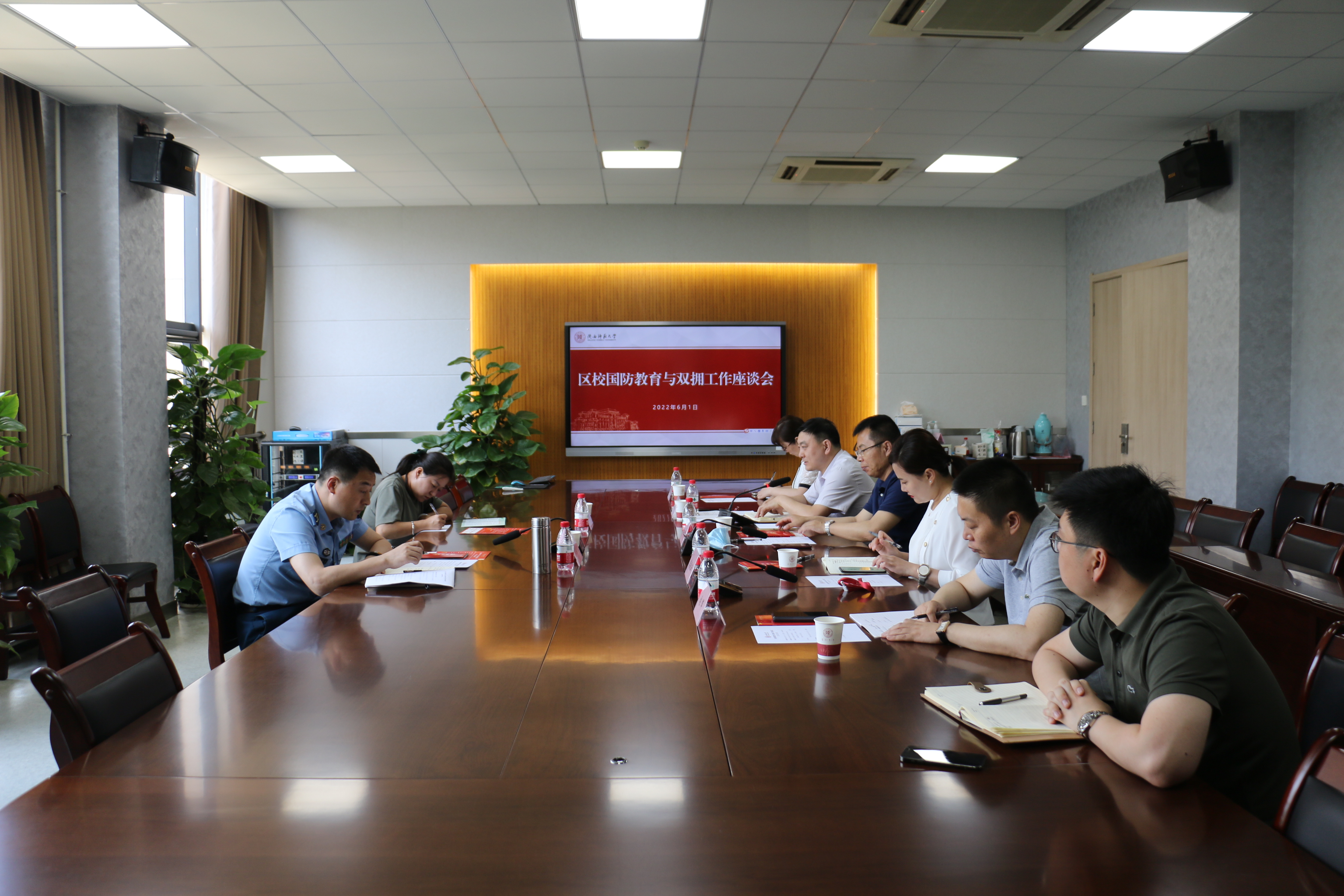 6月1日上午,雁塔区委常委、区人武部政委常海波一行来我校调研国防教育和双拥工作。校党委副书记王永安,党委学工部(武装部、学生处)、附中、附小相关负责人参加调研座谈。
