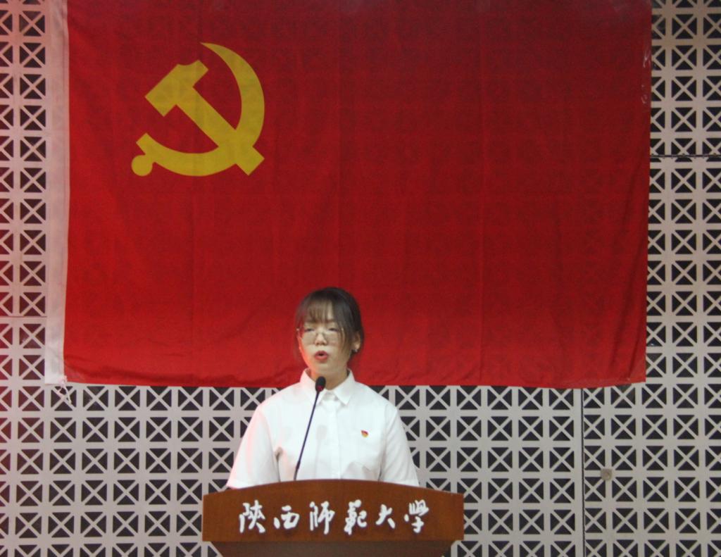 大会在庄严的《国际歌》歌声中正式开始,全体党员在领誓人的带领下重温入党誓词、回忆初心使命。2018级计算机软件与理论专业博士研究生赵艳琦、2017级计算机科学与技术专业罗焱文代表2021届全体毕业生党员发言。赵艳琦同志提及自己在实验室度过的无数日夜与不断努力得到的学术成果,向学院老师给予的鼓励表示了由衷的感谢,并表达了自己对老师与毕业生党员们的美好祝愿。罗焱文同志表示,作为一名即将回到家乡新疆工作的公费师范生,她时刻牢记学校“西部红烛精神”,矢志为家乡的教育事业奉献自己的力量。