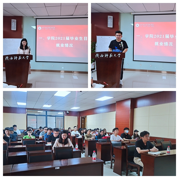 会议伊始,李悦、石雷霆先后汇报了2021届本硕博就业工作进度,李晔客观分析学院就业情况,并针对就业工作中存在的问题和重点任务进行梳理。