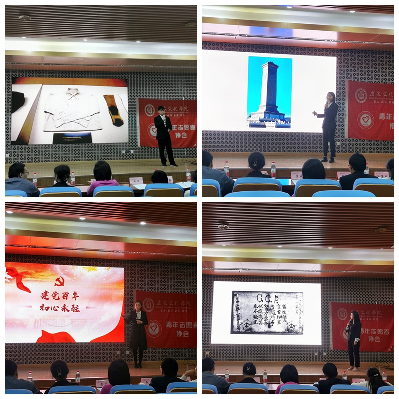 为深入开展党史学习教育,提升我校大学生综合素质和能力,2021年5月16日下午,由历史文化学院举办的主题为“建党百年路,青春正当时”的红色文物讲解大赛复赛在陕西师范大学教育博物馆学术报告厅顺利举办,此次活动由学院青年志愿者协会和我爱博物馆社团共同举办,活动前期得到各学院大力支持,经各学院选拔推荐,共23名学生入围本次复赛。担任本次比赛的评委有:历史文化学院团委书记洪海安,历史文化学院教师黄薇、赵潮,青年志愿者协会副主席西安碑林博物馆优秀志愿者郭宇飞,青年志愿者协会副主席大唐西市博物馆优秀志愿者张晓月。