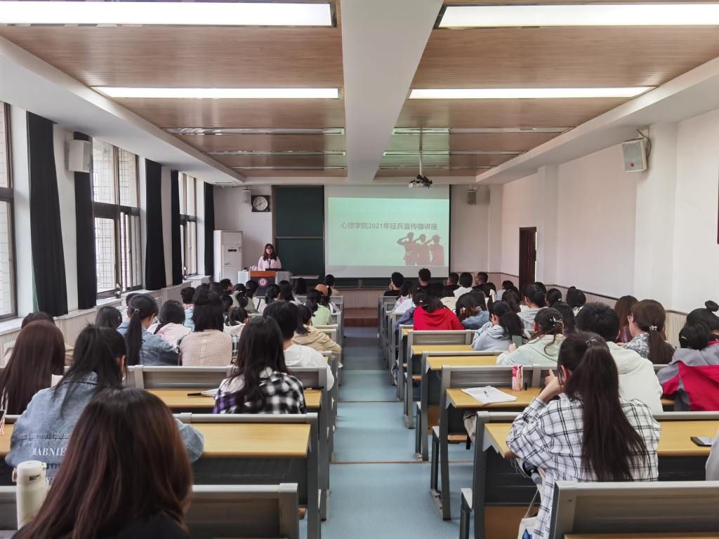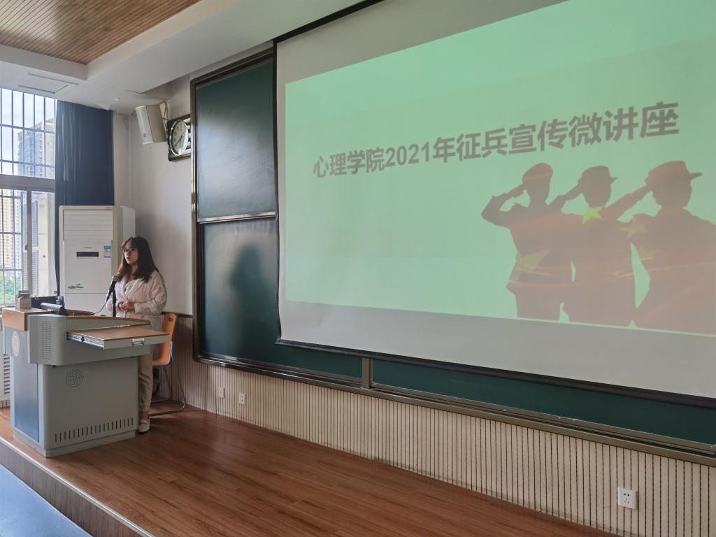 为加强征兵政策宣传,鼓励大学生积极携笔从戎,切实做好我校秋季征兵工作,5月17日晚,心理学院在教学九楼9701教室举办大学生征兵政策宣讲会,由心理学院本科生辅导员仉天聪主讲,2020级、2019级、2017级全体同学参加了宣讲会。