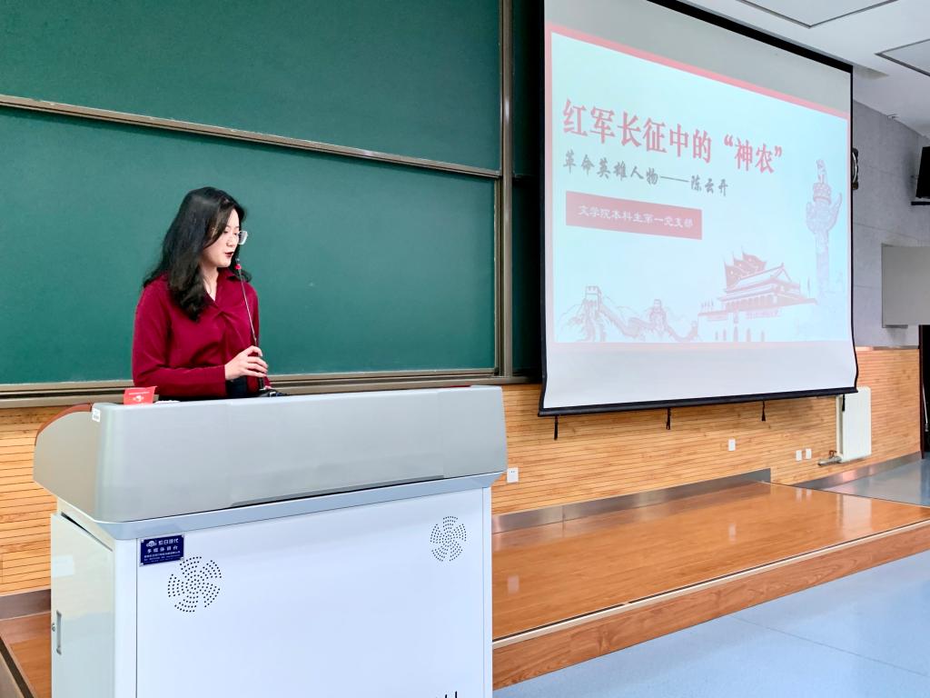 近日,文学院2021届本科毕业生开展了“讲述党员故事,照亮奋斗征程”党史学习毕业教育主题活动,辅导员程海峰主持,文学院本科生第一党支部书记霍楚宁进行第一期宣讲。