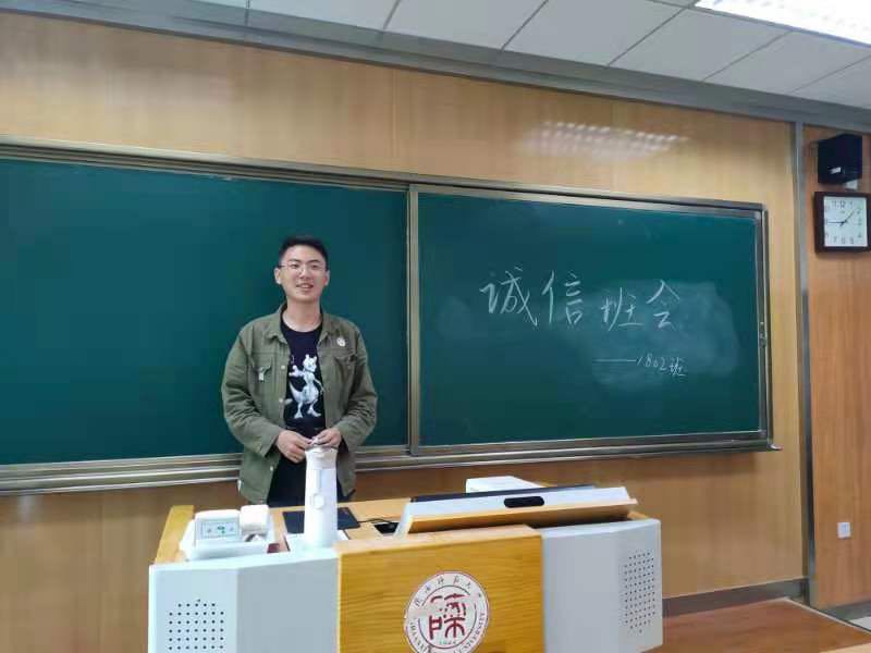 诚实守信是中华民族的优良传统,是做人的基本原则,更是青年大学生的必备品德。为弘扬这一优良品德,强化学生的诚信意识,培养学生的守信品质,使学生崇尚诚信,马克思主义学院2018级思想政治教育2班于4月29日在长安校区文渊楼顺利召开“以诚为贵,以信立行”主题班会,本次主题班会由2018级思想政治教育2班班长陈华飞和团支部书记武花妮共同主持。