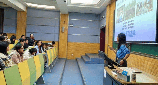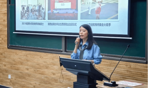 讲座现场,张莎莎校友结合自身鲜活的成长经历与扎实的一线教育实践,从初心、扎根、生长、攀登、守望五个核心篇章,层层递进地讲述了自己与教育事业相伴同行的故事,生动诠释了新时代教育家精神的深刻内涵。在初心篇章中,她深情回顾了自己从陕南小镇启程,毅然选择师范专业的最初缘由,质朴无华的话语里,满是对教育事业最纯粹的向往与热爱,道出了一名教育人最初的梦想与坚守。谈及扎根,她以在母校的求学时光为切入点,结合自身学习经验,为在场学子送上了诸多度过大学生活的实用建议,叮嘱大家要牢牢把握大学时光,夯实专业知识基础,积极积累教育实践能力,为未来走上讲台筑牢根基。