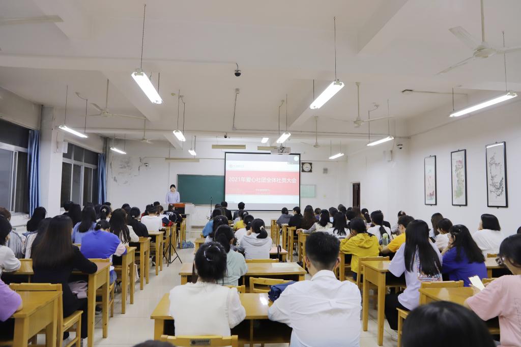 9月5日晚,2021年爱心社团全体社员大会在长安校区文津楼1403教室召开,雁塔校区社员由线上参会。爱心社团指导教师、学生资助管理中心副主任魏云、干事李爽及爱心社团全体学生干部100余人参加会议。会议由李爽主持。