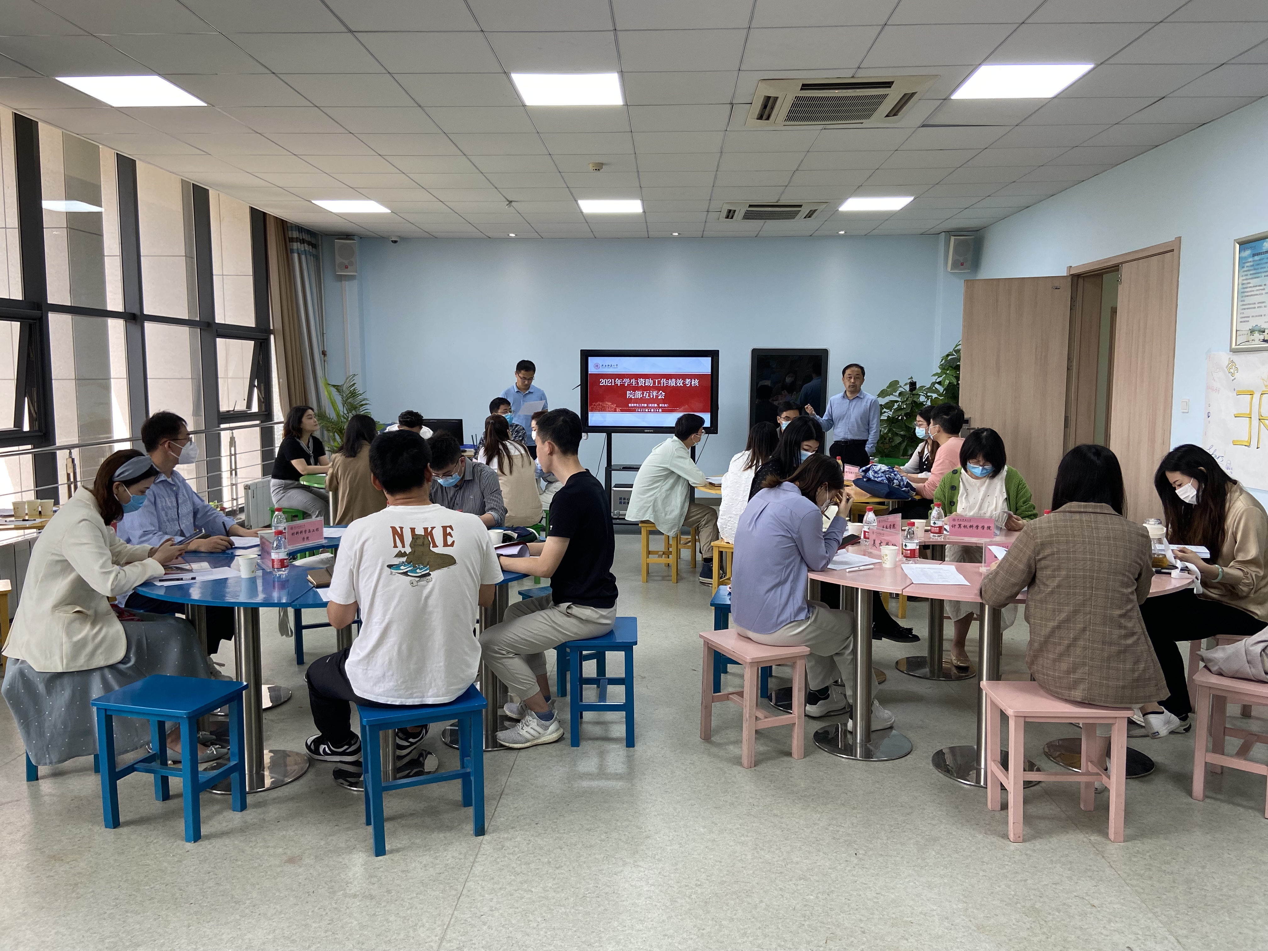 4月26日上午,我校2021年学生资助工作绩效考核院部互评会在新勇活动中心西405室召开。党委学工部(武装部、学生处)副部(处)长王党、学生资助管理中心干部和各院部资助专干参加会议。