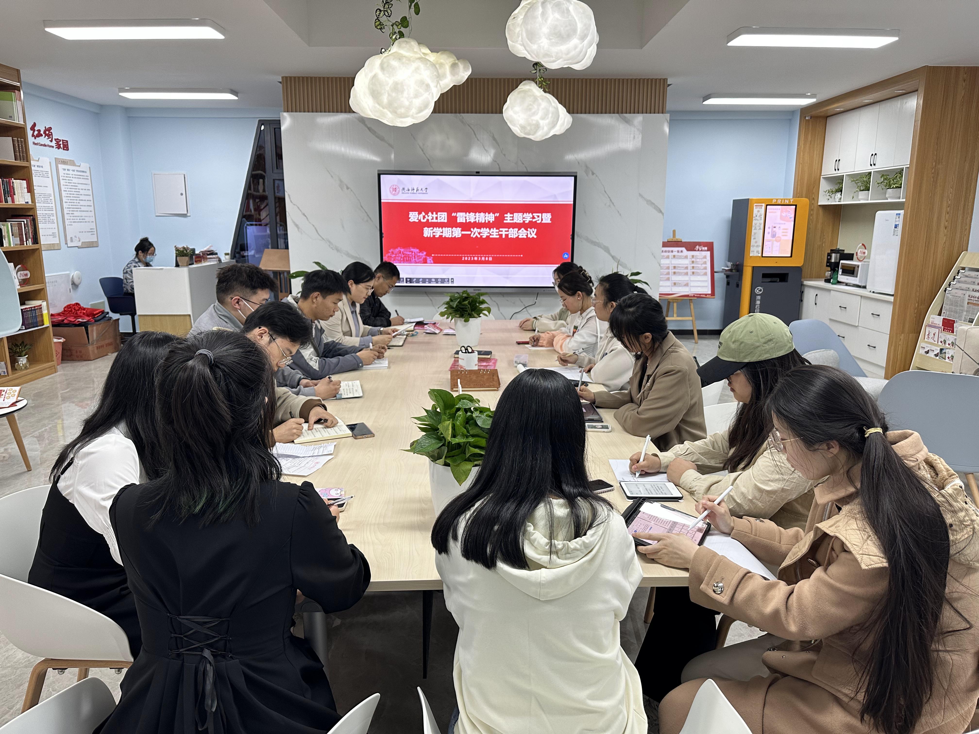 会上,李爽领学了习近平总书记对深入开展学雷锋活动作出的重要指示,与会同学分享了学习心得,并表示会将学雷锋活动融入日常、化作经常,结合社团工作充分发挥模范带头作用,驰而不息服务学校、服务师生。随后,新长城自强社、长雁通、爱心书屋、家教服务中心和微爱新媒体中心五个社团负责人对本学期重点工作逐一进行了汇报。