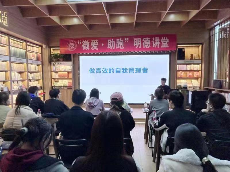 4月7日晚,我校第三期“微爱·助跑”明德讲堂在长安校区新勇活动中心首阳书坊举行,我校校友、中共周至县委政法委员会干部刘寅海应邀作了题为“做高效的自我管理者”的主题讲座。党委学工部(武装部、学生处)相关人员及30名学生参加讲座。讲座由学生资助管理中心干部李爽主持。