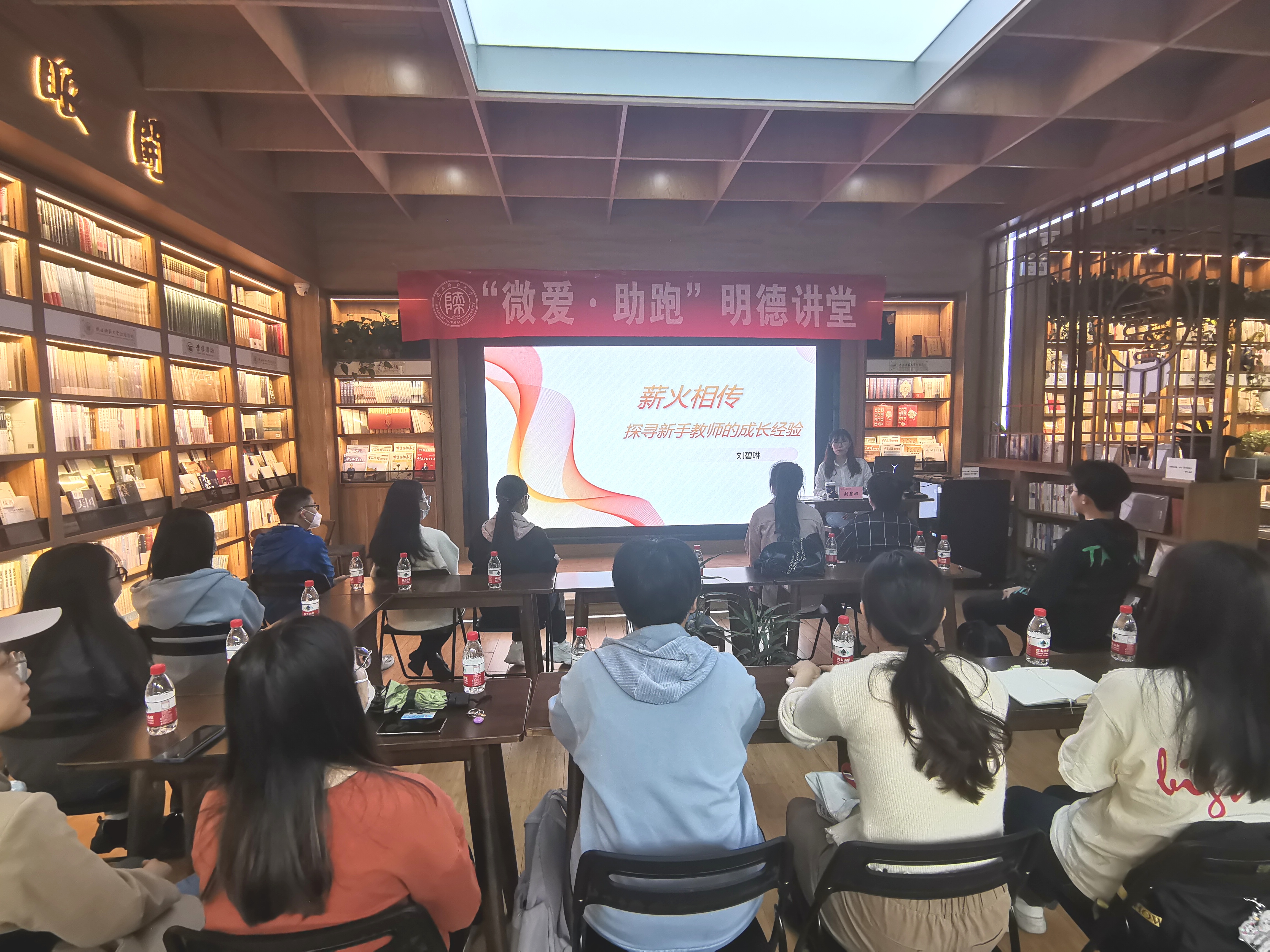 6月2日下午,我校第六期“微爱·助跑”明德讲堂在长安校区新勇活动中心首阳书坊举行,我校心理学院校友、西安高新区第十一初级中学心理健康教师刘碧琳应邀作了题为“薪火相传:探寻新手教师的成长经验”的主题讲座,学生资助管理中心工作人员及20余名学生参加讲座。