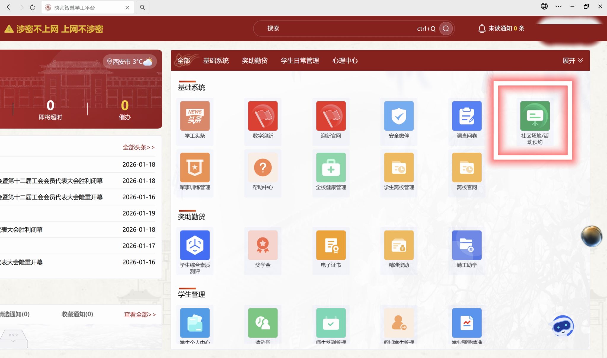 1.登录陕西师范大学智慧学工平台:https://zhxg.snnu.edu.cn