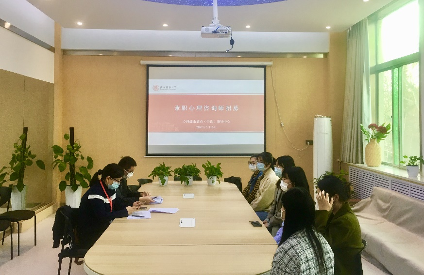 3月17日下午,春季研究生兼职心理咨询师补充面试会议在雁塔校区团体心理辅导室召开。心理健康教育(咨询)指导中心专职教师及28名心理学院研究生参加了会议。