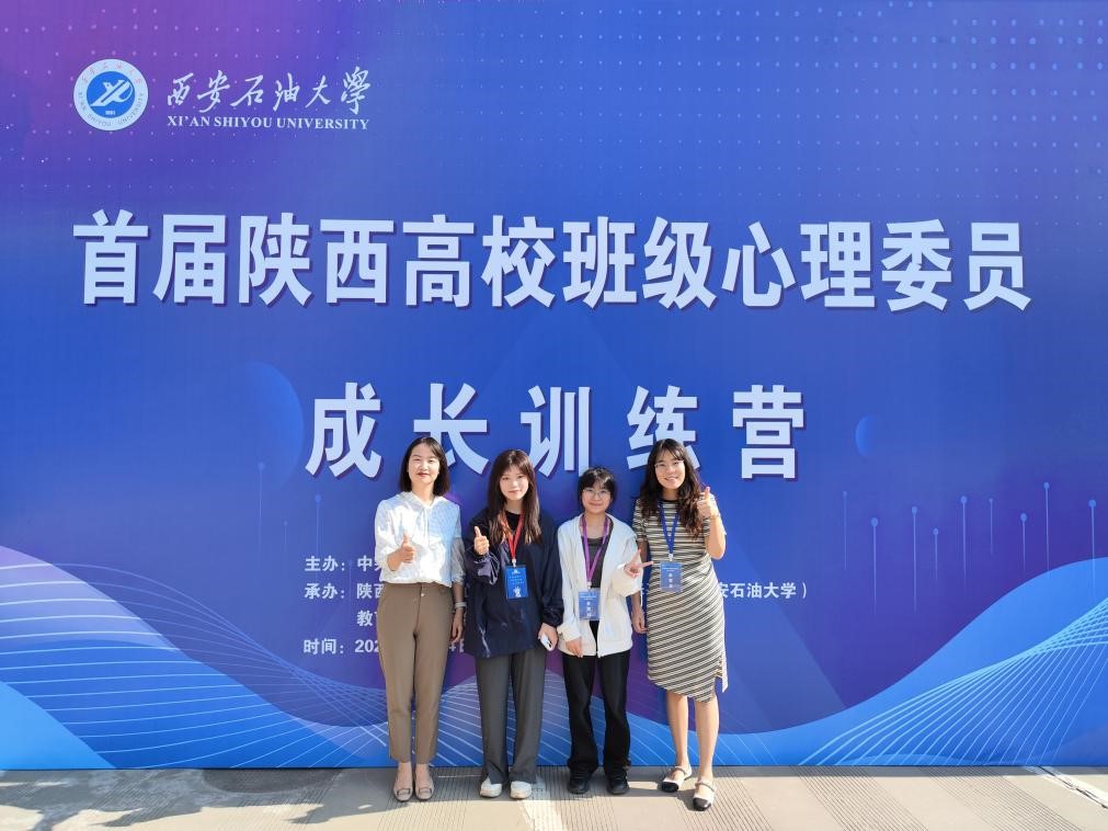 5月24日,首届陕西高校班级心理委员成长训练营在西安石油大学举办,我校心理健康教育(咨询)指导中心副主任周全丽、专职教师纪星烨以及两名心理委员代表参加了此次训练营。