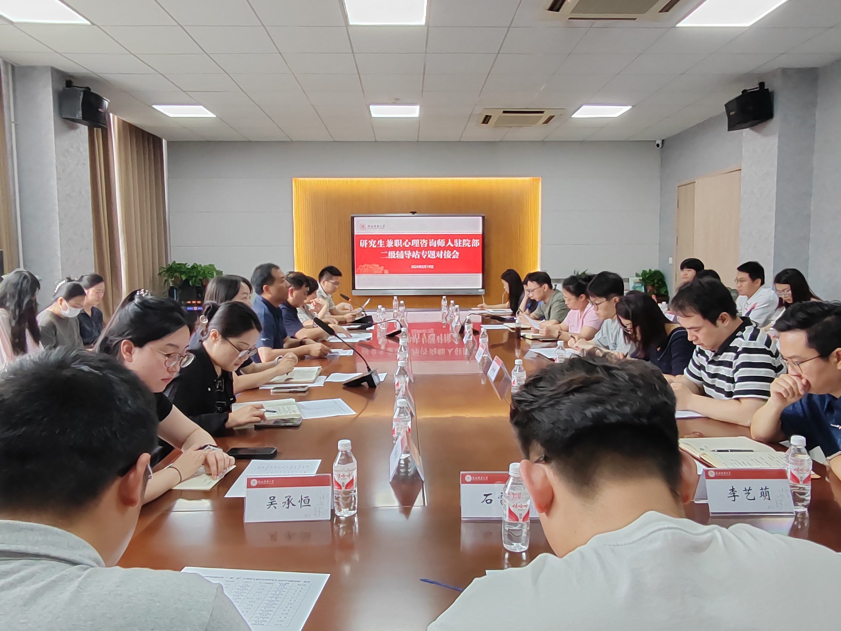 6月19日上午,研究生兼职咨询师入驻院部二级心理辅导站专题会议在新勇学生活动中心举办,会议分入驻对接和专题培训两个阶段。党委学生工作部(学生处)部(处)长辛向仁、副部(处)长祁斌业,心理学院党委副书记杨茜,心理中心专职教师,全体心理专干及入驻兼职咨询师参加了会议。