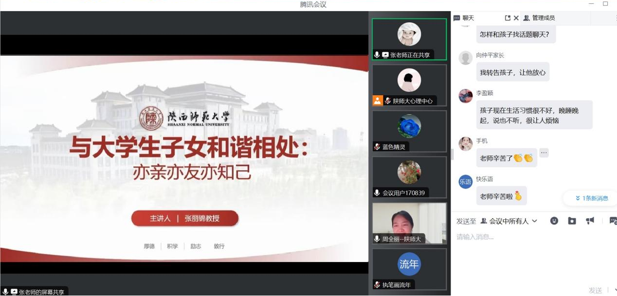 据悉,学校心理中心每学期利用假期时间,邀请相关专家组织开展“家校共育空中心理课堂”系列主题讲座,吸引广大学生家长积极参与,在构建家校协同育人机制,凝聚家校育人合力方面取得了良好的育人实效。