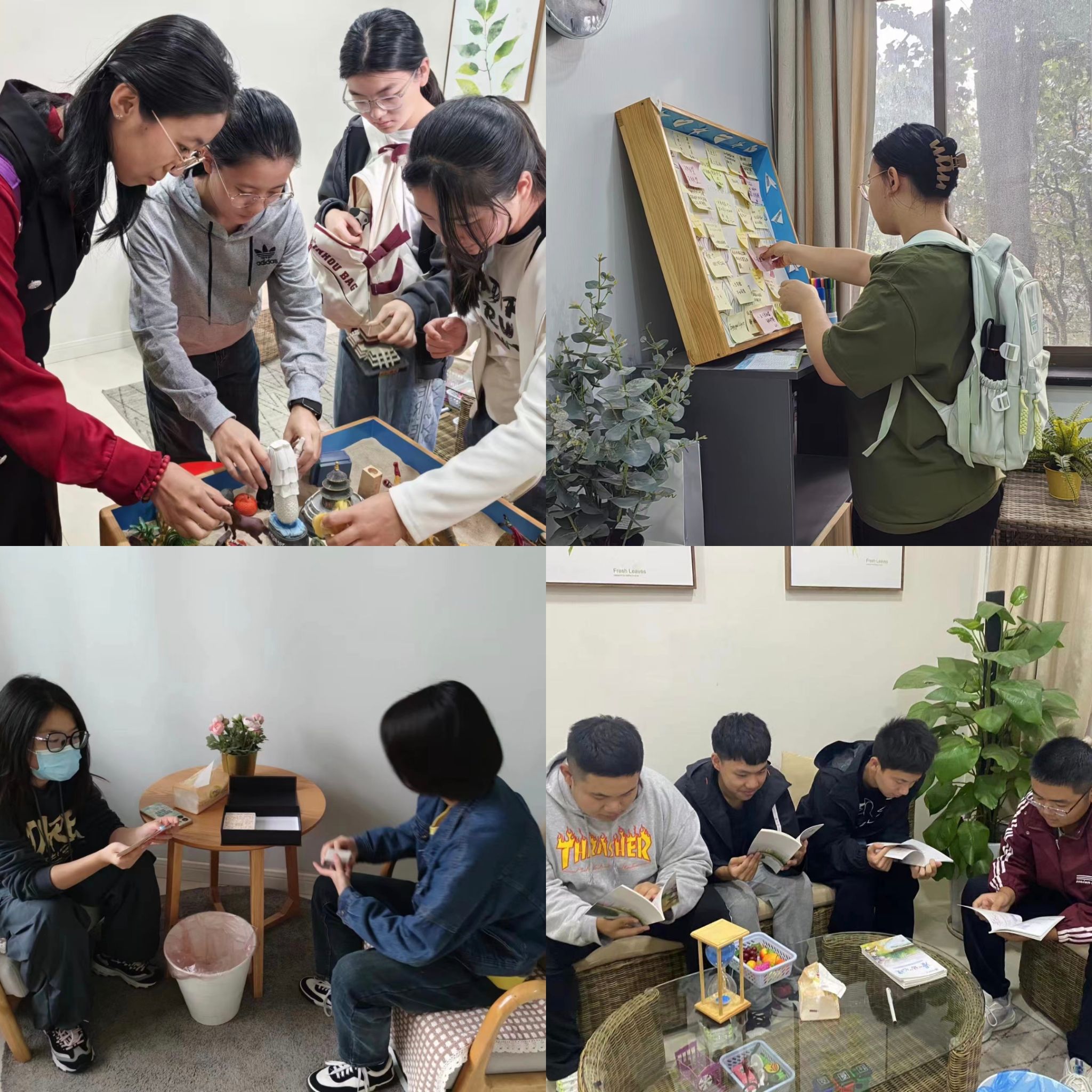 在心理健康教育(咨询)指导中心志愿者的细致讲解与引导下,同学们深入了解了个体咨询、团体辅导、健康科普、行为训练、情景体验和危机援助等服务。“心愿墙”和“音乐疗愈”等活动,以轻松愉快的方式,鼓励同学们勇敢表达,分享内心的情感与期望,相互传递友谊与温暖。