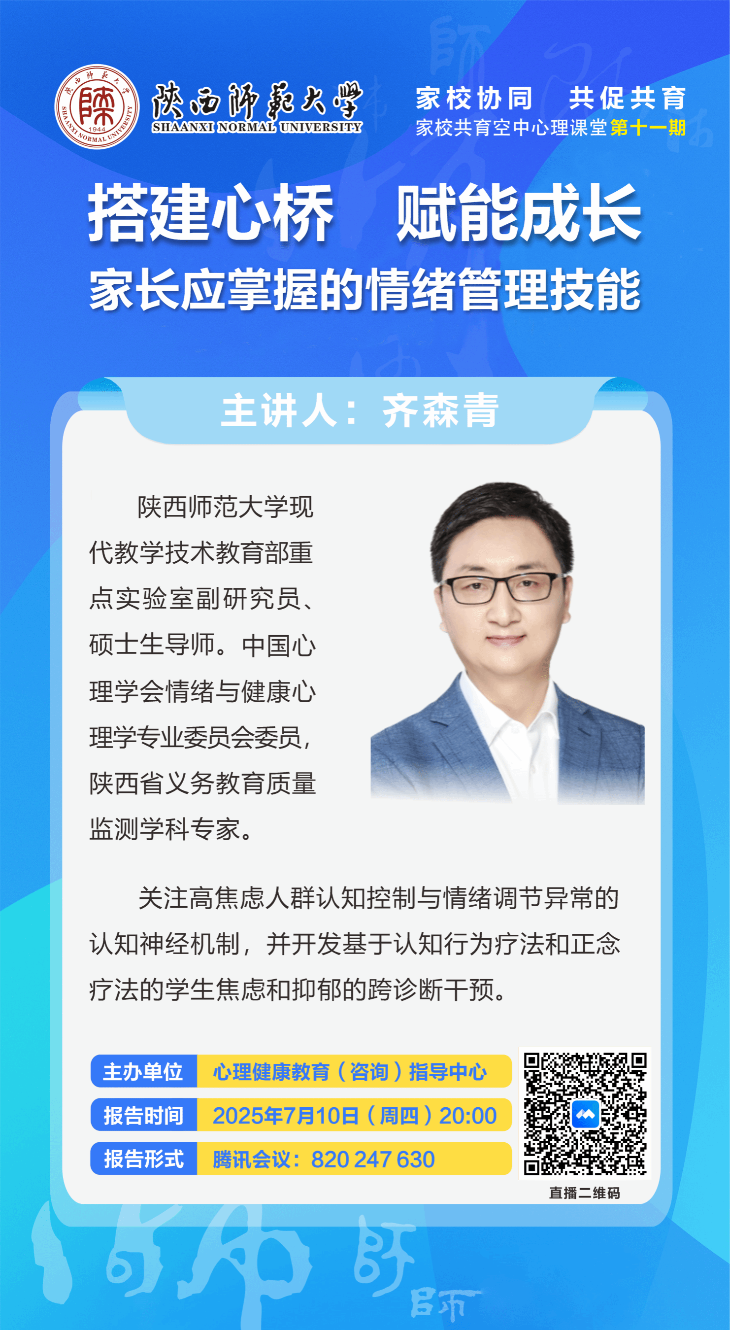 据悉,学校心理中心每学期充分利用假期时间,邀请校内外专家举办“家校共育空中心理课堂”系列主题讲座,吸引了众多家长积极参与。通过这一活动,学校积极推动家校协同育人机制建设,凝聚家校协同育人合力,切实为学生的健康成长和全面发展提供有力支持。