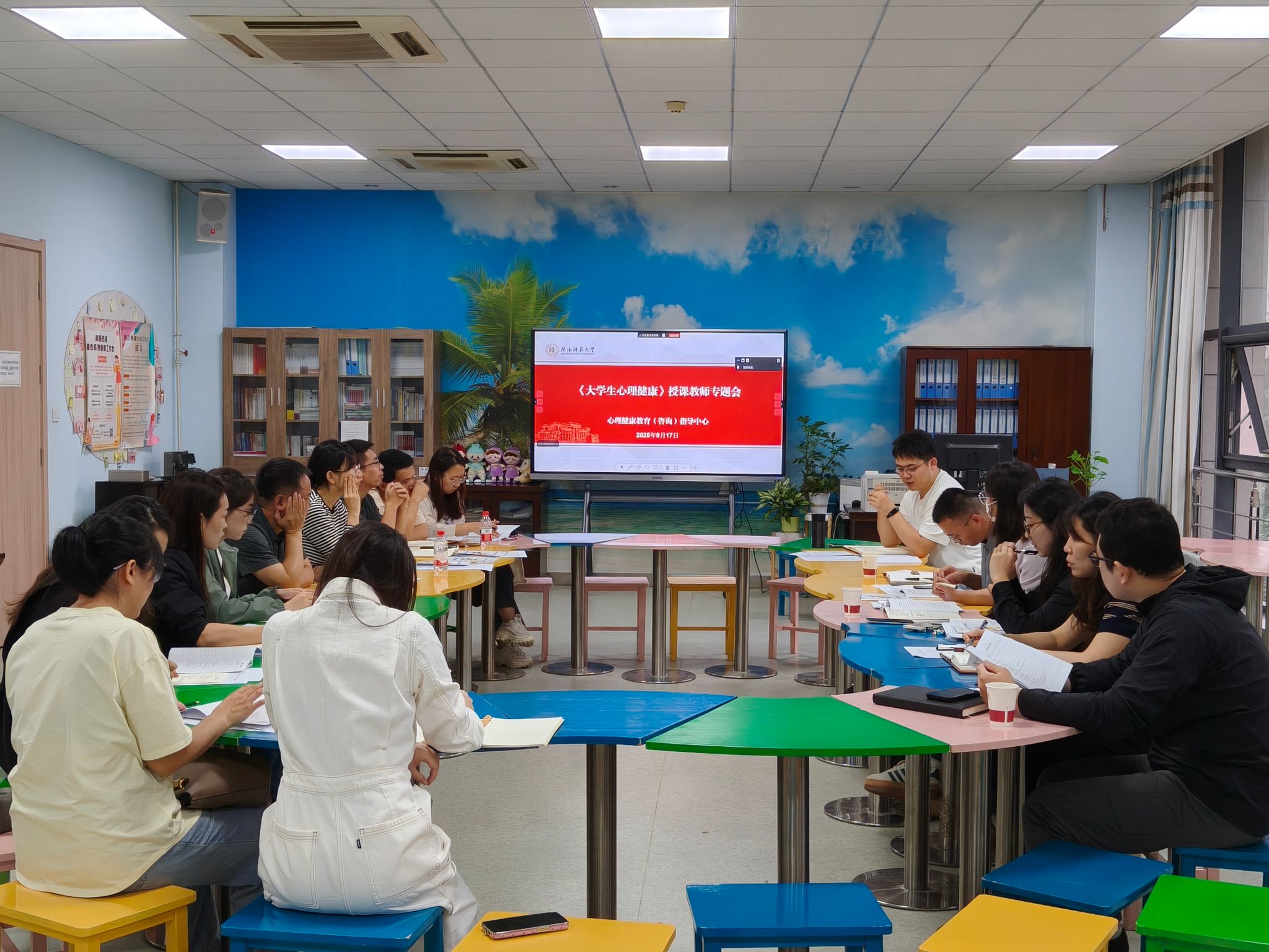 9月17日上午,《大学生心理健康》授课教师专题会在心理健康教育(咨询)指导中心长安校区团体辅导室召开,党委学工部(学生处)副部(处)长、心理健康教育(咨询)指导中心主任薛占飞及《大学生心理健康》课程全体授课教师近20人参加了此次会议,会议由中心副主任周全丽主持。会议围绕课程考核与管理、本学期备课情况、《大学生心理健康》教材与《大学生心理成长手册》使用说明、学期课次设置等内容展开。与会授课教师结合自身教学实践,...